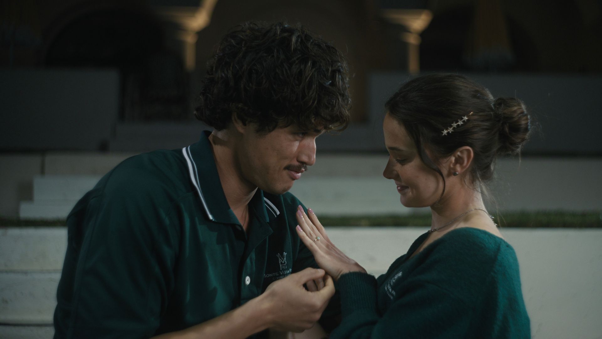 ビーフ の第 2 シーズンは、ジョシュが妻とスピーチをしている間、アシュリーとオースティンがカントリー クラブで働いているところから始まります。これは、2 組のカップルの間の力と地位の違いを即座に浮き彫りにします。ジョシュとリンジーは、より経験豊富でうんざりしているように見えますが、より若く、より希望に満ちたアシュリーとオースティンとは対照的です。このコントラストがシーズンを通して両カップルの旅を形作り、物語が進むにつれてますます不穏なものになっていきます。アシュリーとオースティンの関係の理想主義的な性質は、人生の現実によって挑戦されます。