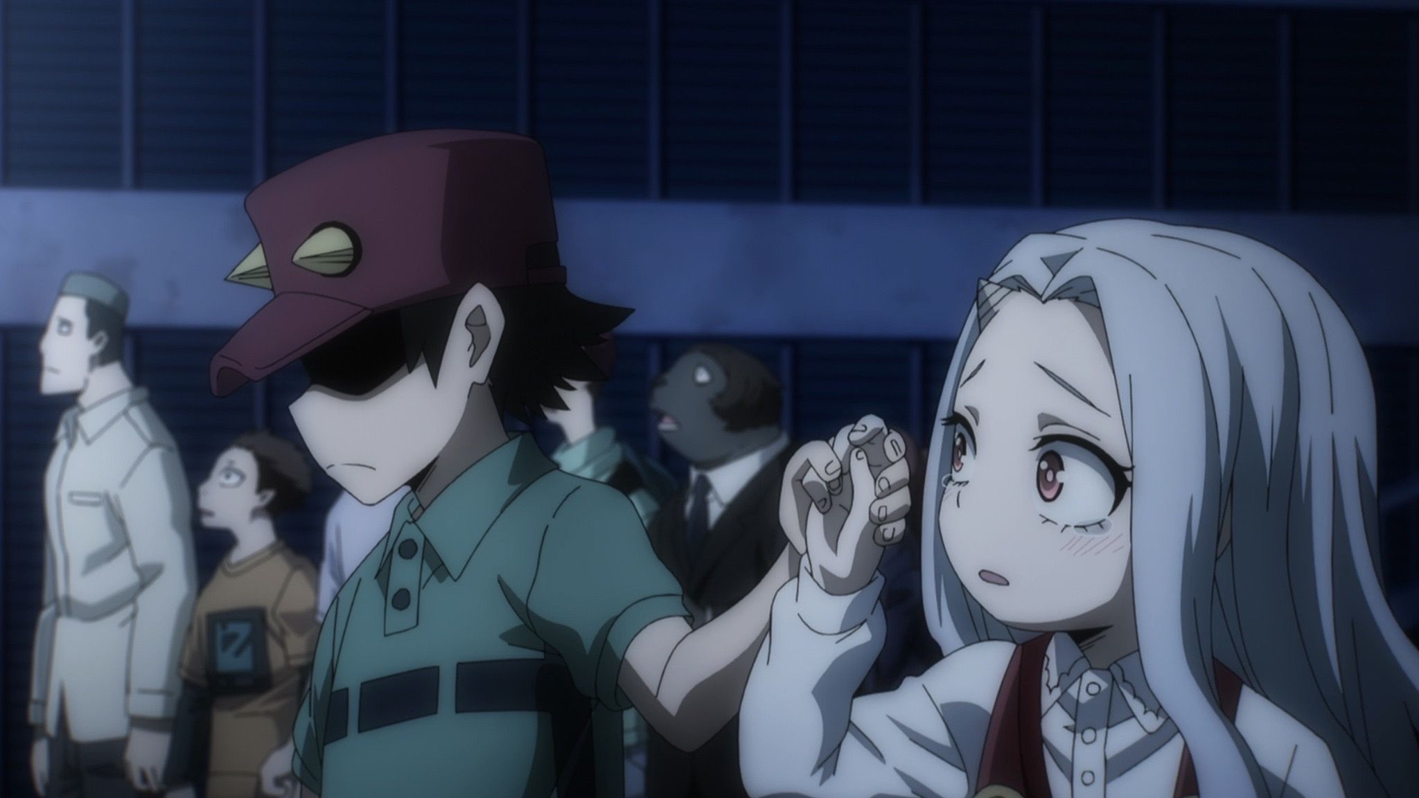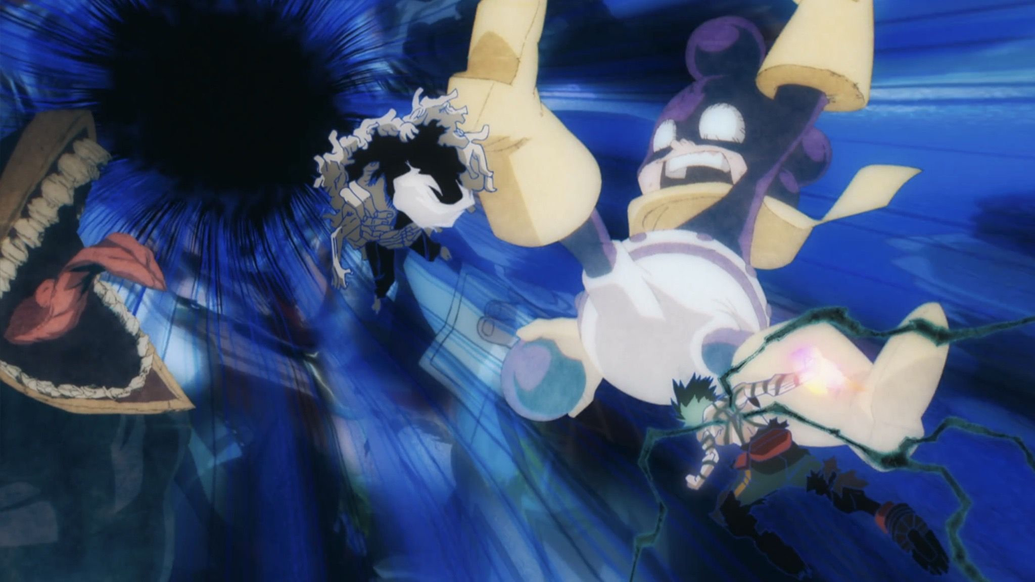 アニメーションは必ずしも悪いわけではありませんが、若い信楽がオール・フォー・ワンの手を握っているシーンは間違いなくハイライトです。ただし、フロッピーとミノルが戦い中に予期せず現れるなど、いくつかの瞬間は漫画からアニメにうまく変換されません。漫画では意味のある一周の瞬間のように感じられたものが、アニメでは奇妙に場違いに見え、ビジュアルスタイルを適切に仕上げることがいかに重要であるかを示しています。