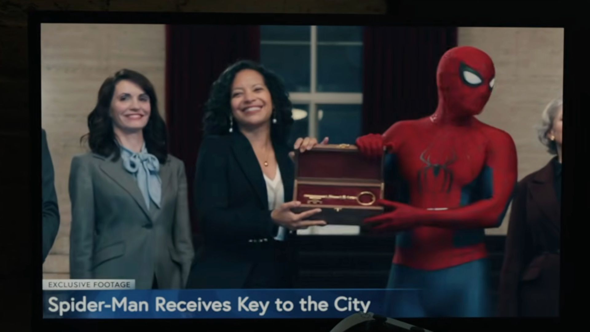 アンドリュー・ガーフィールドのスパイダーマンと同じように、トビー・マグワイアのバージョンもスパイダーマン 3 (2007) で街への鍵を受け取りました。グウェン・ステイシー(ブライス・ダラス・ハワード演じる)がそれを彼に贈ったが、式典はサンドマンによって一時的に中断された。
