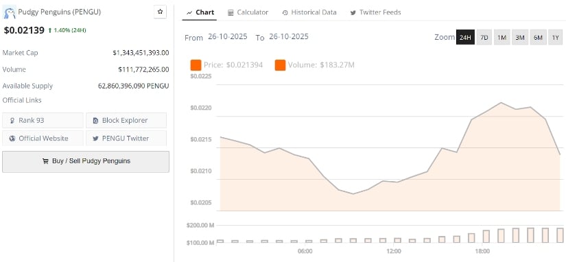 価格は $0.02139 ですか?それは値段ではありません、冗談です。 1.00ドル?もちろん、なぜそうではありませんか?みんな、何が起こっているのか知っているふりをしましょう。 🤭 時価総額は? 13億4000万ドル。うわー、ペンギンがたくさんいるね。 🐧💸