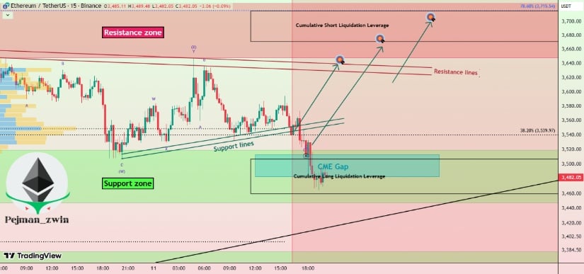 日中の分析では、イーサリアムが嵐の中のコルクのように揺れ動き、3,520ドルから3,348ドルの間で止まっていることがわかります。 3,507ドルから3,460ドルの間で、長期にわたる清算が時計仕掛けのように起こっている。そして、そのようなことを気にしている人のために、エリオット波動の予測は、イーサリアムが調整波を終え、潜在的にさらなる輝かしい上昇に向けて準備を整えていることを示唆しています。メロドラマのようですね。