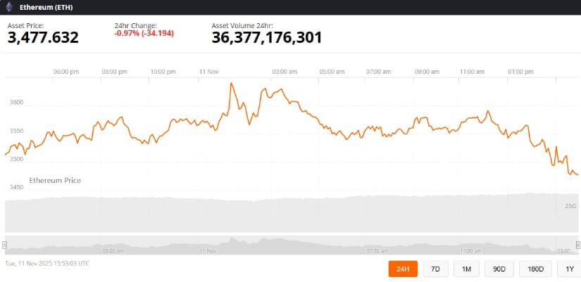 11月中旬に3,400ドルまで小幅下落した後、イーサリアムは3,500ドル付近で推移している。クリプト・シーザー、そうです、それがその名前です、と雄牛はおもちゃを握りしめている幼児のように「その範囲を懸命に守っている」と言います。現在、イーサリアムは3,564ドルでかなりの水準にありますが、今日は若干の損失がありますが、まあ、状況はさらに悪くなりました。取引量は急増しましたが、3,590ドルという魔法の数字にはまだ達していないようです。