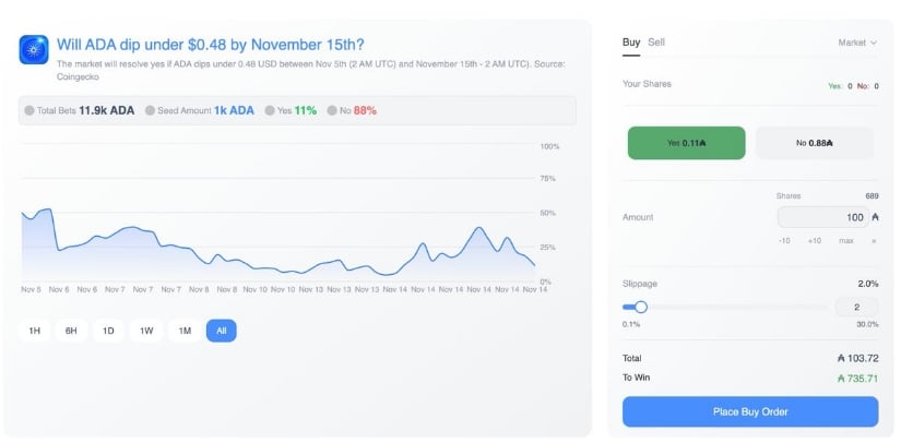 しかし、暗闇の中に、希望の光は消えません。ボデガカルダノの予測統計は、価格が深淵をもてあそんでいるにもかかわらず、より高いレベルへの信念にしがみついているコミュニティを明らかにしています。 ADAはより低いレンジをテストしているが、大多数は依然として0.48ドル以下の急落に賭けており、彼らの楽観主義は押し寄せる絶望の波に対する防波堤となっている。これは雄牛の最後のあえぎなのか、それとも新たな時代の幕開けなのか? 🌅🐂