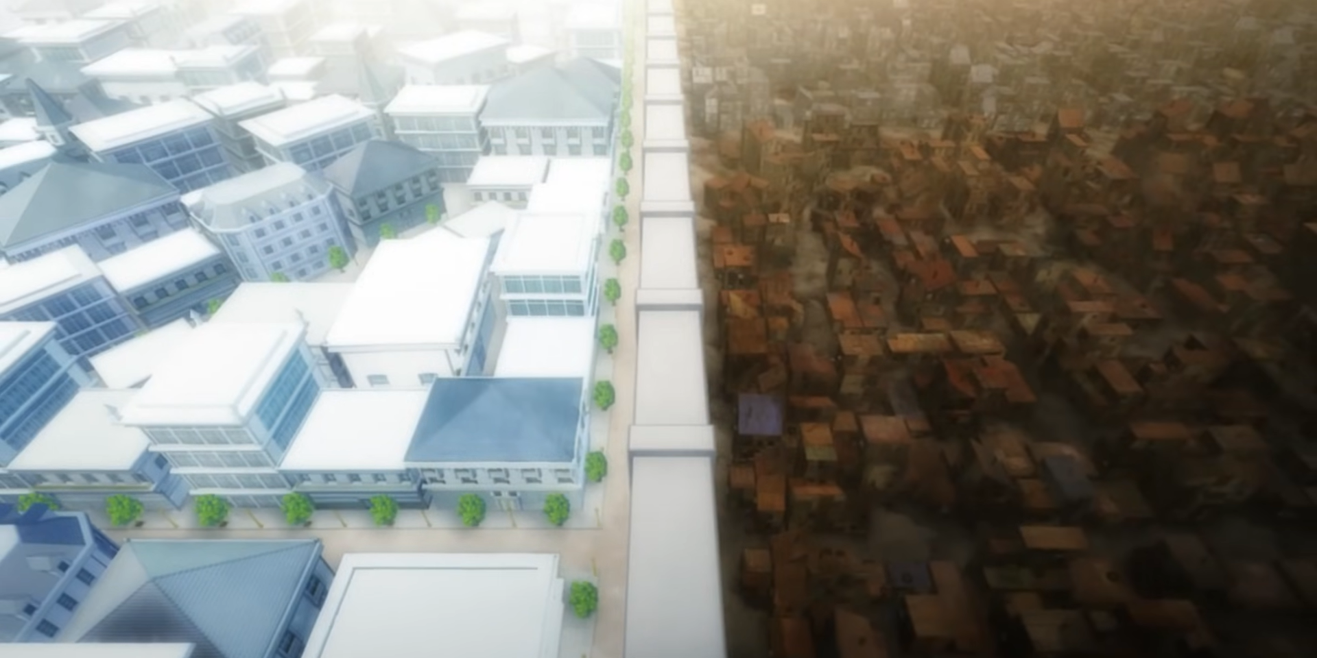 ガチアクタの世界構築は、最近のアニメの中で最も魅力的なものの 1 つです。社会は、裕福で快適な人々が住む汚れのない上層地区と、望ましくないものとみなされたすべての人々が廃棄される荒涼とした下層地区に大きく分かれています。この設定は典型的な階級対立のように見えるかもしれませんが、ケイ・ウラナはそれをより深い道徳的欠陥として提示します。世界は使い捨ての原則に基づいて運営されており、壊れた物や使用済みの商品、さらには人さえも簡単に捨てられます。これは、人々が過剰消費の影響を無視することで快適さを維持する、回避の上に築かれた社会を生み出します。