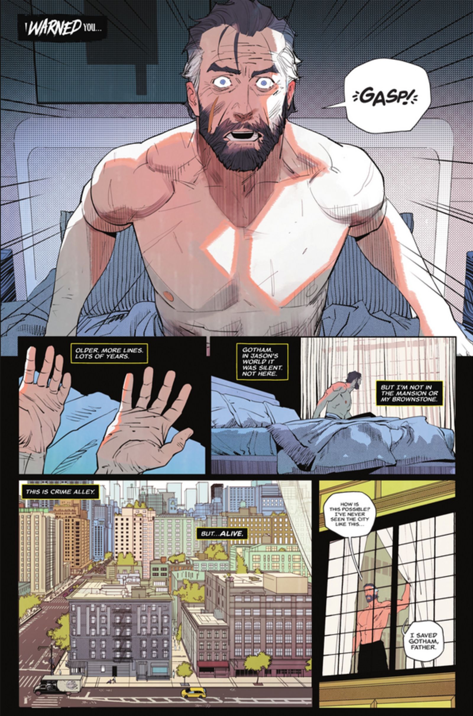 DC K.O.: ナイトファイトの第 3 号では、ブルース ウェインはアポコリプスの心臓によって画策された容赦ない一連の戦いに直面し、かつての同盟者であるディック グレイソンとジェイソン トッドの別バージョンと戦うことを強いられます。彼の最後の対決が典型的な戦いではなく、希望に満ちた未来のゴッサムシティで行われると、状況はさらに複雑になる。そこでは彼の孫、アルフレッドがバットマンの必要性を知らずに平和な生活を送っている。