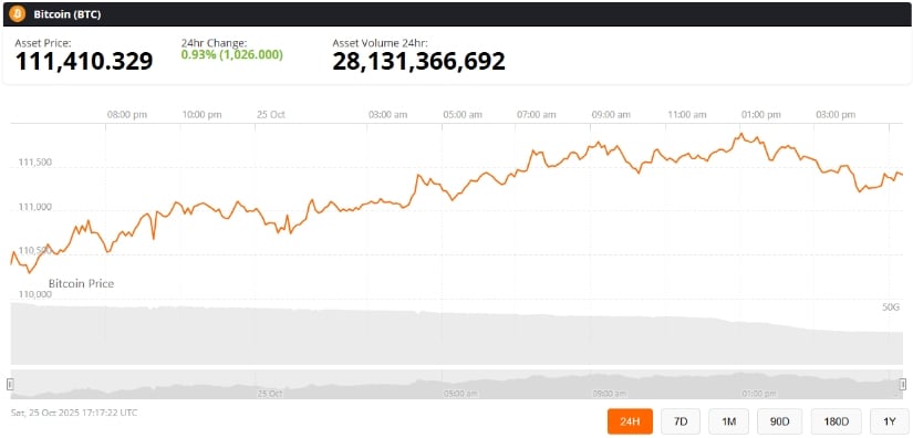 2025 年 10 月 25 日の時点で、金融の海の気まぐれなサイレンであるビットコインは 111,000 ドル近くで取引されており、MACD ヒストグラムは初めての舞踏会にデビューした女性と同じくらいプラスに転じています。評判の悪いストラテジストであるマックス・クリプト(@MaxCryptoxx)は、「$BTC MACDのゴールデンクロスが間もなく起こります。最後のクロスは1週間以内に新しいATHをもたらしました。」と声を張り上げています。彼は暇なときにお茶の葉やタロットカードを調べているのだろうかと不思議に思う人もいるだろう。 🃏☕