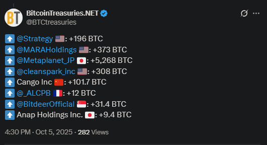 マイケル・セイラーの戦略は、640,031コインでパックをリードしており、約740億ドルの価値があります。 *ゆっくりと拍手。*そして先週、12億ドルのビットコインが公共部門で最大の埋蔵量を燃料としました。メタプラネット、マーラ、そして戦略?彼らは食べています。 🤑