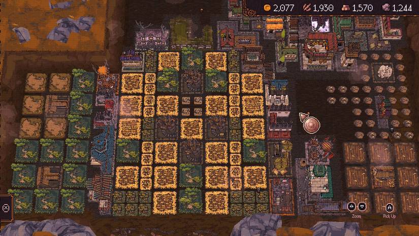 各収穫サイクルの後、自動的に開始点に戻り、無料ラウンドでリソースを収集します。すぐにストレージがいっぱいになり、New Ballbylon を拡張する必要があることに気づきます。これにより、未使用の領域がいくつか作成されます。収穫は常にリフトの目の前にある特定のゾーンで開始されるため、そのエリアで資源を生産するタイルを整理しておくことが重要であることを覚えておいてください。