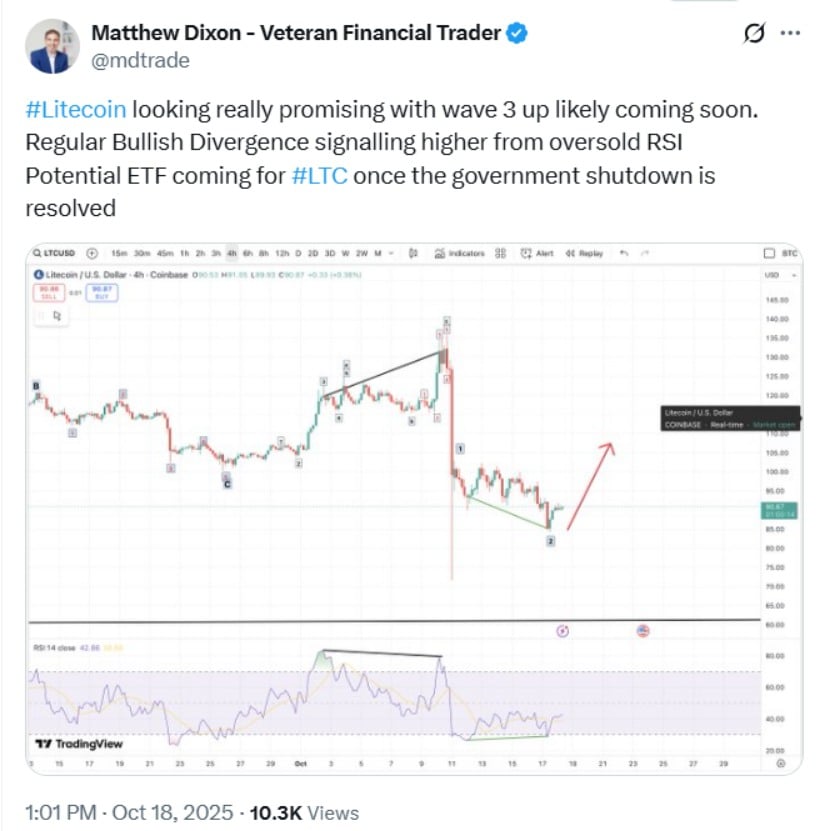 ETFの承認、つまり仮想通貨のシンデレラの瞬間により、LTCは14%急騰し、その後暴落しました。金融機関、つまりあの気難しい古い銀行家たちは、今では LTC を、大げさだが儲かる新しいヴィンテージのように見ている。そして@NumberOfWealth?その狂人は、2026 年までに 7,000 ドルを夢見ています。友よ、夢は愚か者と詩人のものです。 🌌