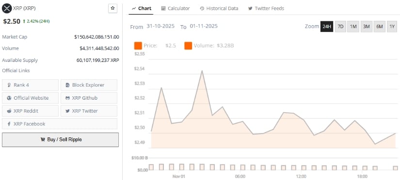 これは単なる推測ではありません。歴史がそれを裏付けています。 11月はXRPにとって過去において素晴らしい月であり、80%以上の上昇を記録しました。また起こる可能性はありますか?アナリストはそう考えています。そうなれば、XRPはその3.50ドルの壁を突破し、スター(別名、過去の最高値)に照準を合わせるかもしれません。 🌠📉
