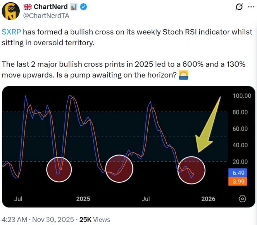 週足チャートはまるで預言者のように、売られ過ぎの深淵でラリーと強気のクロスオーバーの可能性をささやいている。賢明な ChartNerdTA の過去のデータは、このパターンを信じている限り、600% または 130% という驚異的な上昇を予告しています。ボリンジャーバンドが絞りを絞られた蛇のように収縮するにつれて、市場は少しずつ秩序を取り戻しつつありますが、日中の混乱は依然として続いています。それはまるでタイタニック号が池の中で向きを変えるのを待っているようなものです。希望と混沌が絡み合います。