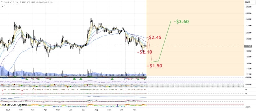 ああ、グランドデザインだ!ドストエフスキーの陰謀のように複雑な計画――2.10ドルまで下落し、つかの間2.45ドルまで反発し、その後1.50ドルまで急落し、しかし再び3.60ドルまで上昇する――そのようなスリリングで悲劇的なダンスだ。これは市場の永遠の対立です。秩序を求める混沌と、安定を求める流動性です。親愛なる読者の皆さん、本当の勝負は出来高を伴って2.24ドルを超えて取引を終えることができるかどうかだということを覚えておいてください。私たちが再び絶望に陥らないように。 🎭