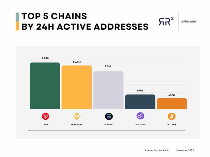 まだ!トロンの街は生きている! 😲 毎日のアクティブアドレス?ドーン!トロンは覇権をめぐってBNBと戦い、ソラナ、ポリゴン、そしてさらには鈍いBTCさえも疲れた群れの動物のように追いかけています。ランドのデータ、つまり暗号聖職者の神聖なタブレットはそれを宣言しています: TRON が 24 時間ユーザーの先頭に立っているのです!老犬にはまだ命があるんです! 🐶