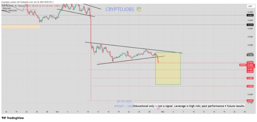それでも、親愛なる読者の皆さん、すぐに喜ぶ必要はありません。現在、オプティミズムは0.40ドルで低迷しており、過去24時間で2.07%の小幅下落となっている。市場では弱気な感情が支配的であるため、悲しい光景と言わざるを得ません。このコインは0.41ドル付近で容赦ない圧力に直面しており、日中の安値は0.38ドルから0.39ドルの範囲を試している。弱気派の勢いは衰えておらず、楽観主義の上昇への旅は今のところ遠い夢のようだ。