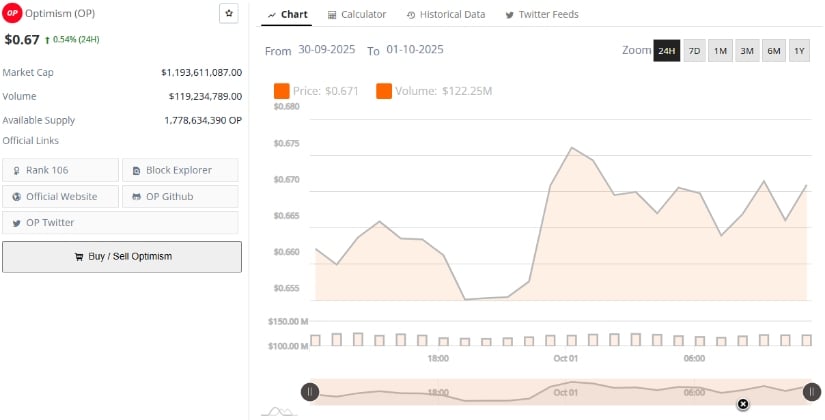 市場の寒い算術によると、楽観主義は0.67ドルで傾い、24時間AHでわずかな0.54%の上昇、滴の進歩があります。その時価総額である高尚な11億9000万ドルは、暗号の王冠の間で悲惨な106番目の王位を留保し、1億1,900万ドルの毎日のbus騒を留保します。 17億7000万人以上のトークンが流通し、イーサリアムの無視されたレイヤー2天才としての主張を支援します。 🌡🌡️