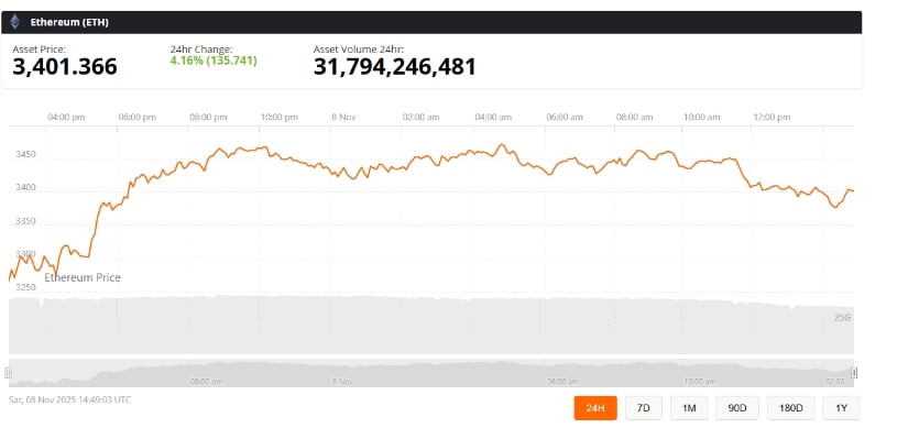 チャート上の波線を読み取る神秘的な技術であるテクニカル分析は、イーサリアムのローソク足構造が陶器店の雄牛と同じくらい強気であることを示唆しています。安値の上昇、取引量の増加、すべては雄牛が手綱を握っていることを示しています。価格は現在、ピザの最後のスライス 🍕 のように 3,500 ドルを目指しています。それを突破すれば、今後数週間で3,700ドル、さらには3,800ドルになる可能性もあります。なぜそうではないのでしょうか?