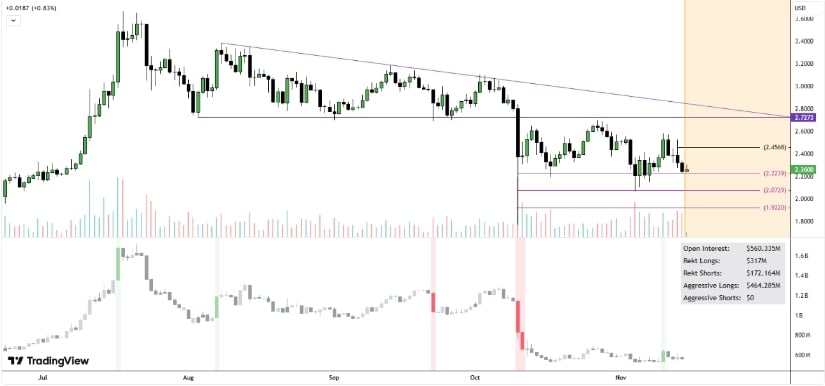 2.31ドルという控えめな価格で取引されているXRPは、強気派と弱気派の間の綱引きに巻き込まれている。 FenzoFx のチャートは、2.072 ドルから 2.223 ドルの範囲で、締め付けが厳しくなっている様子を描いています。飢えた農民のように、ごちそうを求めて買い手が集まる場所。 🍞🐂