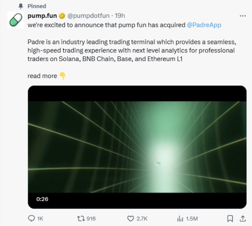 Memecoin市場が冷え込む中、Pump.funがPadre Trading Terminalを買収