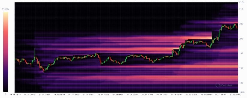 貪欲と恐怖を狡猾に記録する市場データは、ショートポジションが臆病なハリネズミのように後退していることを明らかにしている。 190ドルから205ドルへの上昇は、弱気の絶望のマスタークラスであり、流動性プールが蜘蛛の巣の露のようにきらめくバレエです。白衣を着た神託者 CW8900 は、ショーツが「ほぼ消耗している」ことを確認します。壊れた時計と同じくらいスリリングなフレーズです。現在、買い手たちは手綱を握り、酔ったキリンのような優雅さで230ドルに向かって疾走している。