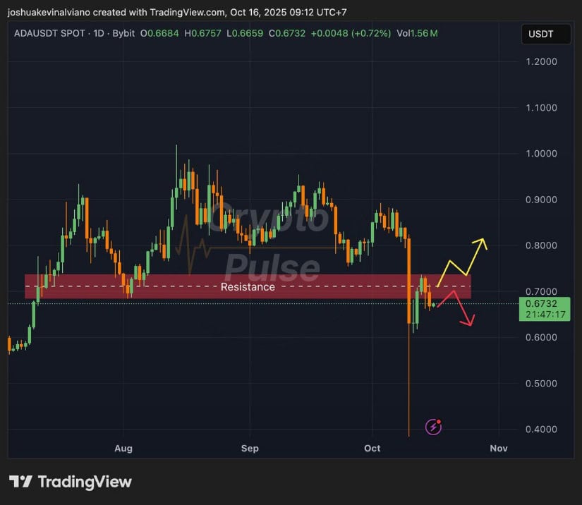 ADAは現在、富を勝ち取るか失うかが決まる激戦区である0.68ドルから0.70ドルのレジスタンスゾーンをテストしている。ブレイクアウトすれば0.80ドルから0.85ドルに向けて急騰する可能性があるが、失敗すれば0.62ドルから0.60ドルに戻る可能性がある。永遠の綱渡りである市場は、ナイフの刃でバランスを保っています。それは未知の世界に飛び込むのでしょうか、それとも平凡な安全な場所に後退するのでしょうか?