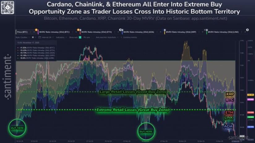 言っておきますが、これはファンダメンタルズに関するものではなく、市場でのポジショニングに関するものです。 LINK や ETH などのアルトコインもマイナス MVRV ゾーンに突入しており、主要な L1 エコシステム全体に同期された価値ポケットが形成されています。エイダ?プールの奥に座っていて、いつでも砲撃を受けられるようになっています。 🏊♂️💦