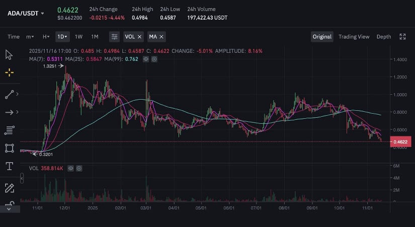 TapToolsのチャートは、ADAが0.45ドル付近の長期的な構造的支持線に迫っていることを示しており、この水準は恨みを持つ小人よりも信頼できる水準である。価格は25日移動平均線と99日移動平均線を下回っているが、そのすぐ下にある複数年のサポートバンドは金融の神様が織りなすセーフティネットのようなものである。 🕸️💰 ここは、長期参加者が蓄積を開始する場所であり、特に移動平均、出来高の動き、過去のトレンドの反転にわたって星が揃っている場合に当てはまります。このサポートが維持されれば、ADA は安定し、次の壮大な冒険のための基盤を構築できるでしょう。 🏰🚀
