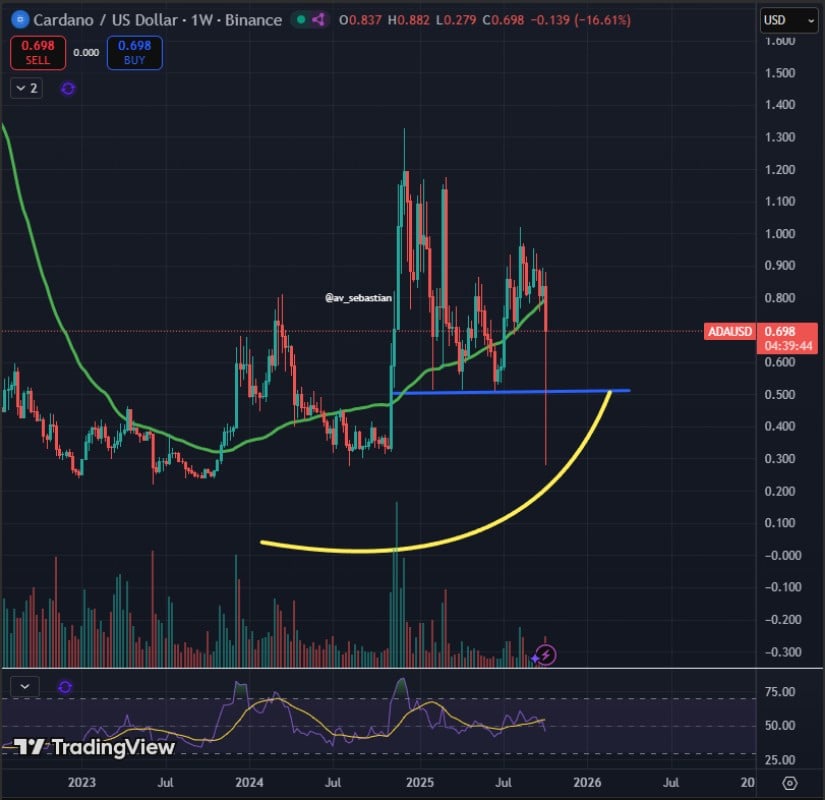 ああ、Sssebi (はい、「が 3 つ付いています。どうしてですか?」) は、ADA が 0.80 ドルを超えて週を終えた場合、それは基本的にウィリー ウォンカのクリプト ファクトリーへのゴールデン チケットだと言っています。 🎟️ 50週移動平均?どうやら、そこが運命の分岐点のようだ。それを逃すと、あなたは仮想通貨の荒野に住むただの悲しい袋に過ぎません。それを打てば、あなたはブロックチェーンボールの美女です。 💃