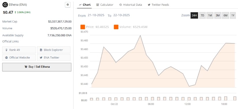 アナリストらは、賢明なうなずきとともに、このリバウンドは絶え間ないボラティリティの嵐の中でENA暗号通貨への飽くなき渇望を明らかにしていると宣言している。 ENAが従順な農奴のようにサポートレベルに敬意を払う限り、さらなる上昇の道が目の前にある。日中2.65%のささやかな下落の後、現在は約0.46ドルで推移しており、0.40ドル付近の短期トレンドラインのサポートをもてあそんでいる。皮肉はさておき、それはすべてひどく予測可能です。