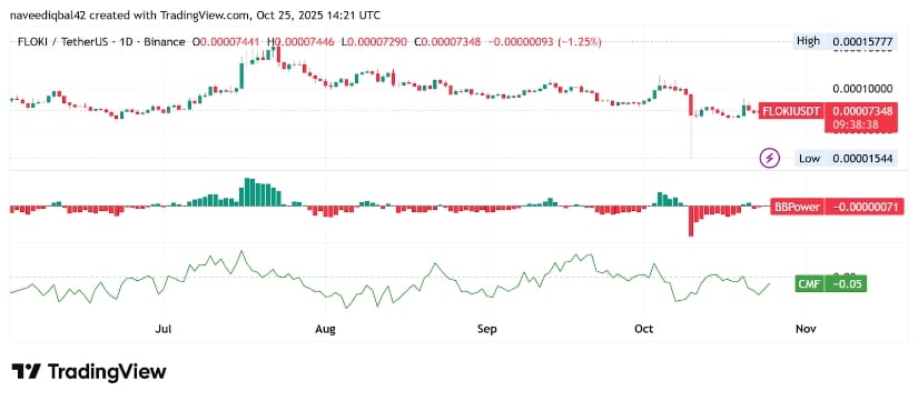 FLOKI は 0.0000732 USDT でボラティリティの瀬戸際にあります。その最近の歴史、0.0001577 から 0.00001544 までの高低の物語は、混乱に陥った魂を物語っています。 10月の急落、弱い回復の試み、そして今回の統合。価格はレンジの下限付近で風に吹かれる木の葉のようにさまよっている。 🍂💨