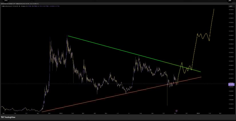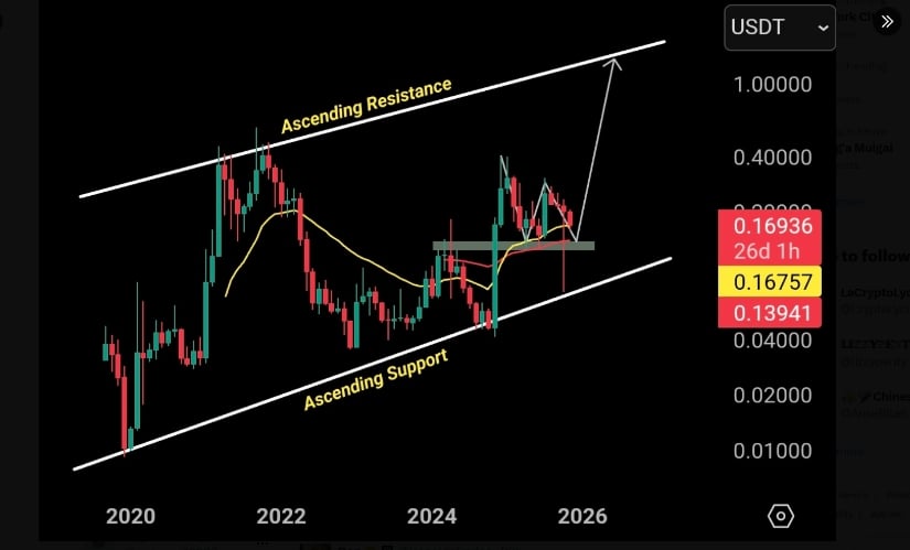 0.165ドルから0.17ドルの間の新たなサポートゾーンは、これまでのところ買い手が勇敢に戦ってきた戦場である。この傾向が維持されれば、短期的な反発が開花する可能性がある。そうでなければ、価格は破滅のシーズンフィナーレに突入する可能性があります。ただし、あらすじをネタバレしないようにしましょう。 🎬