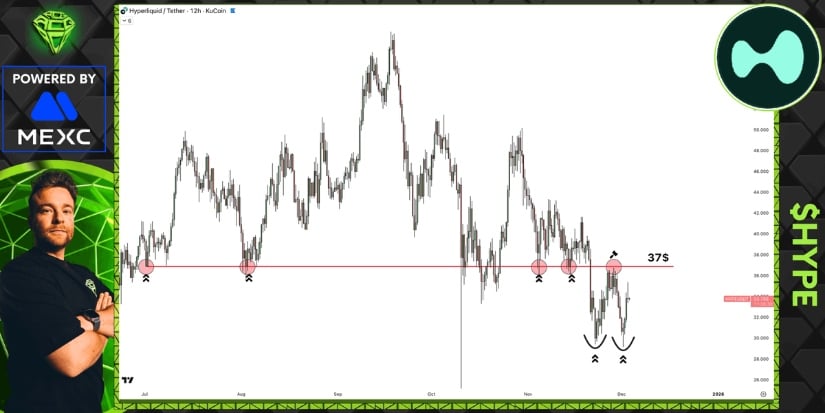 この予測は、HYPE が厄介な 37 ドルの抵抗線を取り戻すことができると仮定すると、次の高流動性フェーズで際立ったパフォーマンスを発揮する可能性があるという考えとも結びついています。 🏆