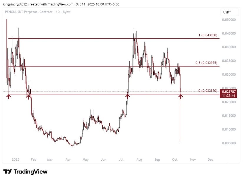 常に監視している傍観者であるキングピン・クリプトは、その日の大粛清の後、PENGUがいかに重要な境目で苦しむかを指摘する。 0.022ドルから0.023ドルの飛び地は堅実な需要と調和しており、0.5フィボナッチは以前の熱狂から後退しており、取引量の急増が休み時間の男子生徒のようにディフェンダーが潜んでいることを示唆しているため、束の間の休息に向けて少しずつ傾いている合流点である。 😏