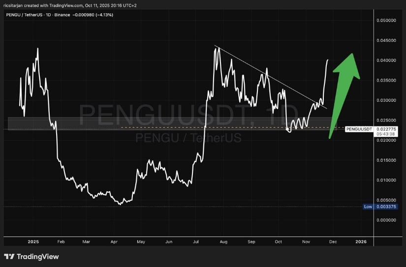 0.025ドルを超えて活力が復活した場合、ずんぐりしたペンギンはより高い気候によろめき、新たに0.030ドルから0.045ドルを探る可能性があります。形、精神、そして貿易の相互作用は芽生えつつある底値に収束し、ひとたび自信が再び浮上すれば、PENGU の次の疲れ果てた上昇を決定づける準備が整っている――ああ、幻滅の中にある永遠の希望の戯れだ。 🙄