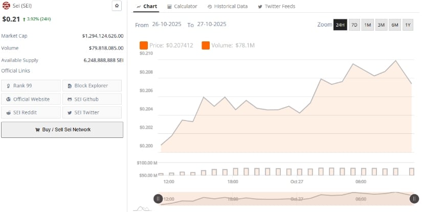 SEIは依然として0.21ドルで推移しており(過去24時間で3.92%の小幅上昇)、ネットワークの時価総額は13億ドルに近づいている。悪くないですよね?取引高は7,980万ドル、流通供給量は62億4,000万トークンと、状況はやや上向いているようだ。トークンは、極めて重要な0.20ドルのレベルを超えて回復した後、「まだ完全に死んではいない」回復段階に入っているようです。ふー。 😅