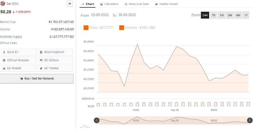 一方、市場は17億ドルの堅実な時価総額でそこにぶら下がっています。統合されているトークンには悪くありません。また、約1億2,200万ドルの24時間の取引量があるため、物事を面白く保つには流動性が十分です。 Crypto Cha-chaの統合を行っているにもかかわらず、SEIは暗号ランキングで#87で安定しています。