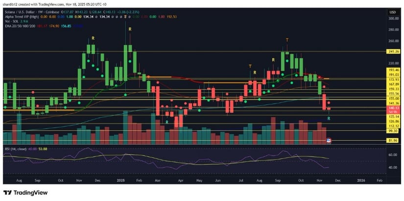 謎のソラナは、時間枠全体で反転のちらつきを示しています。BTCペアのブレイクアウト、週足のローソク足の反抗、出来高の上昇、そして130ドルからのきれいな反発です。テクニカルなささやきがETF主導の風と一致すると、不可能が現実的になります。 🌪️