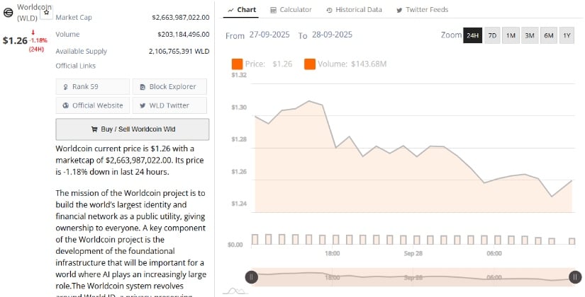 Bravenewcoinの1日間のチャートは、私たちがすでに知っていることを確認しています。WLDは1.26ドルで取引されています。音量?平凡なときに興奮を必要とするのは誰が興奮を必要とするので、控えめな2億300万ドルですか?コインは、コアラからユーカリ、将来の計画がゼロのように、1.20ドルのレベルにしがみついています。 🐨