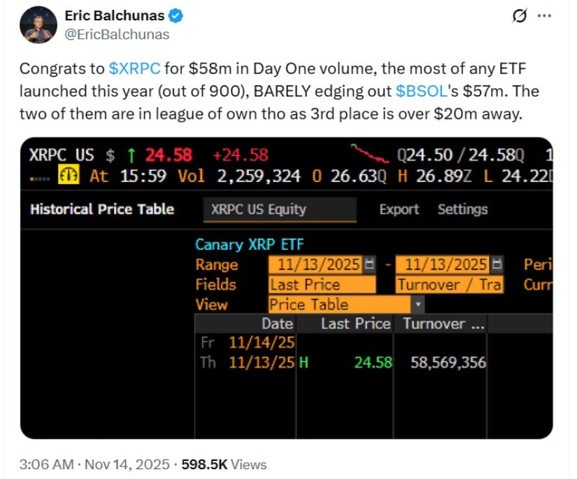 ああ、ETFですね! Canary Capital の 2 億 5,000 万ドルのデビューは、仮想通貨の海に一石を投じました。ブルームバーグの吟遊詩人、エリック・バルチュナス氏はその賞賛を歌っている。用心深い巨人である機関は、規制された領域に足を踏み入れています。しかし忘れてはいけないのは、ETFは魔法の杖ではないということです。 🪄 確かに安定しますが、上昇を保証するものではありません。政治家の公約のように流入が消える可能性もあるし、ボラティリティは?ここに留まります。 🎢