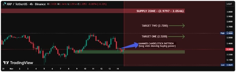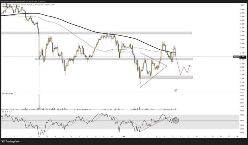 XRPは現在2.306ドル前後で取引されており、これは基本的に昨年のファッショントレンドを着ているのと同等です。しかし、ここがキッカーです。10月初旬から下降チャネルに陥っています。これは非常に典型的なパターンで、メッセージの送信をやめない元恋人のようなものです。下の境界線? 2.23 ドルから 2.30 ドルの間の需要ゾーン。ブラック フライデー セールのようにバイヤーが集まります。このゾーンが維持される場合、XRPは2.72〜2.78ドルを狙うかもしれませんが、2.23ドルを下回る場合はどうなるでしょうか?バックルを締めてジェット コースターに乗りましょう。$2.10 ~ $2.15 です。 🎢