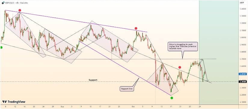 ああ、今私たちを見てください – XRP は恥ずかしくないように 2.50 ドルまで這い上がっています。誰が知っていましたか?結局のところ、市場の「センチメントの改善」と「制度的導入」は「希望とスプレッドシート」のコードにすぎないことが分かりました。そして、「より広範な暗号通貨の修正」についての魔法のような考え方を忘れないでください。なぜなら、暗号通貨に飛び込むことほど「自信」を表すものはないからです。