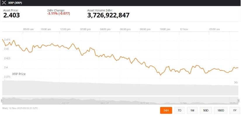XRPは船のフジツボのように2.30~2.40ドルの止まり木にしがみついている一方、市場のざわめきはエスプレッソに浸した蜂の巣よりも大きい。おそらく今週発売される予定の米国初のスポットXRP ETFは、トレーダーをスプレッドシートと睡眠を交換させている。 2025年11月13日、XRPは2.40ドル付近にあり、財布が満杯になり神経がすり減った1週間の利食いの後、反発した。 📉