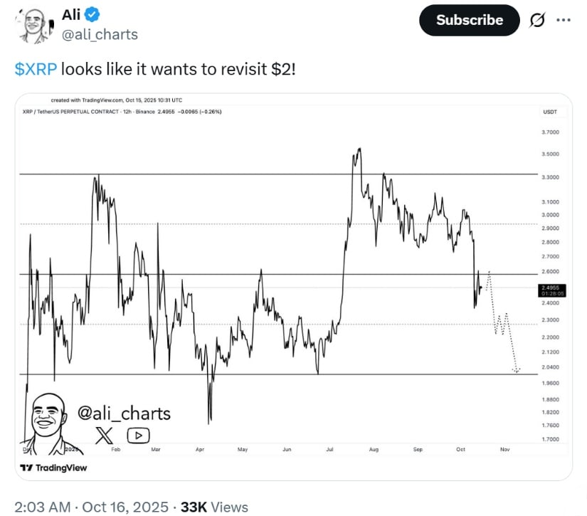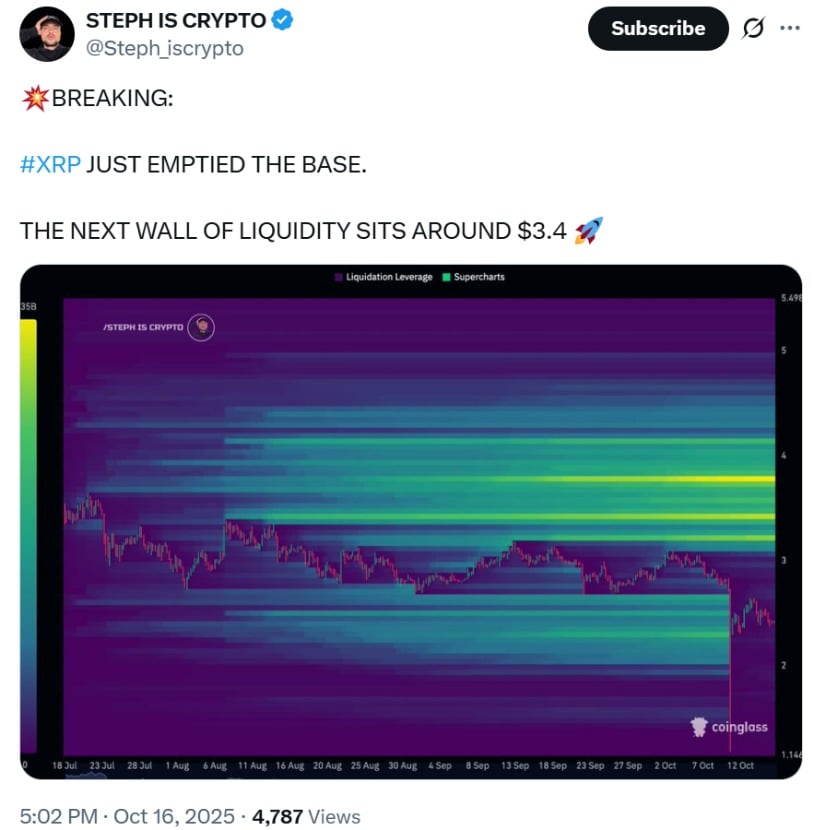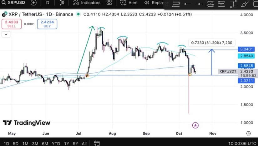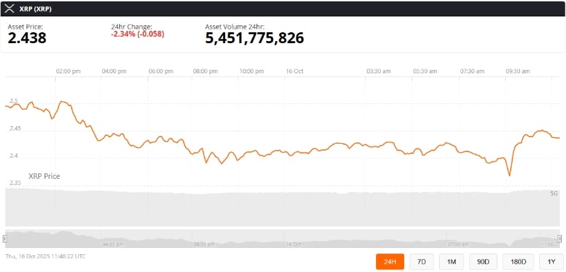 つまり、XRPはまだ存在します。誰かが誤って金融市場を「ランダム」に設定したように感じられた一週間を経て、クジラが物を投げ売りし、清算が驚くべき規則性で起こり、到着するかどうかわからないETFに誰もが息をひそめているのだが、価格はまあ、値動きを止めていない。約2.44ドル。正直なところ、まだ機能しているのは驚異です。 🤔