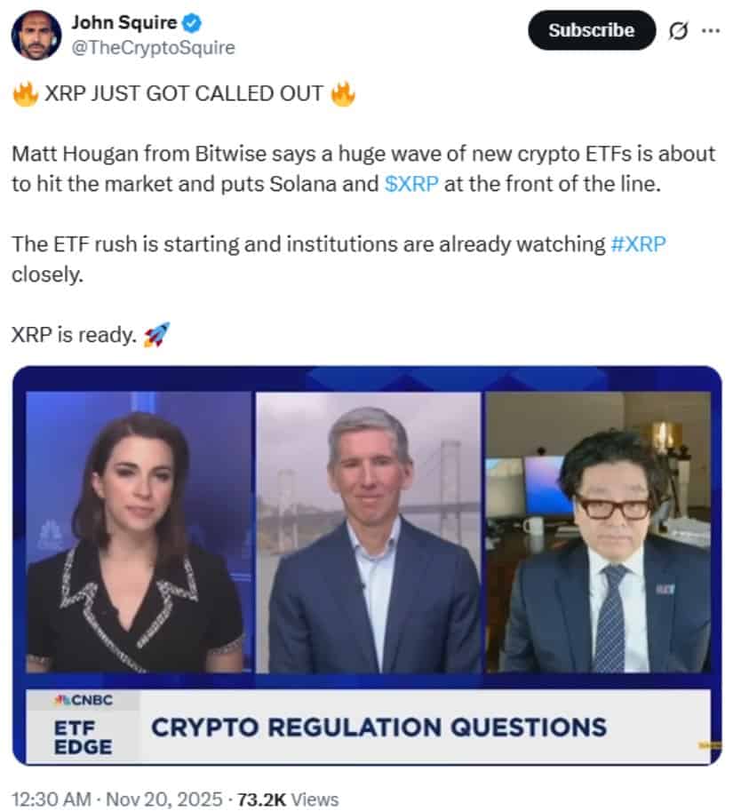Ripple Labs の CEO、Brad Garlinghouse 氏は X の開発を強調し、「XRP ETF の感謝祭前のラッシュ (「七面鳥」とでも言いましょうか!?) が今始まります… @BitwiseInvest の今日の立ち上げおめでとうございます!」 🦃🎉
